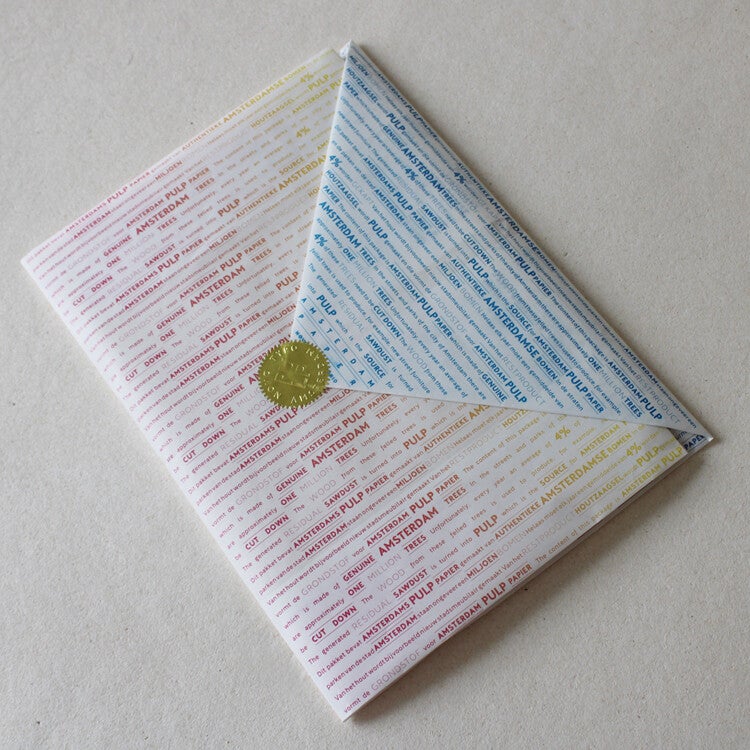 The content of this package is Amsterdam PULP Paper which is made of genuine Amsterdam trees.