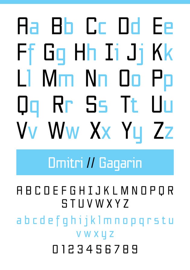 Dmitri Gagarin is a typeface designed for editorial and display use. Gagarin Family comes in 18 different variations for beautiful typographic weight combinations. Gagarin Family is perfect for designing logo's, headings or display typography.