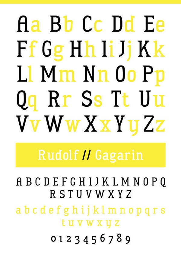 Rudolf Gagarin is a typeface designed for editorial and display use. Gagarin Family comes in 18 different variations for beautiful typographic weight combinations. Gagarin Family is perfect for designing logo's, headings or display typography.